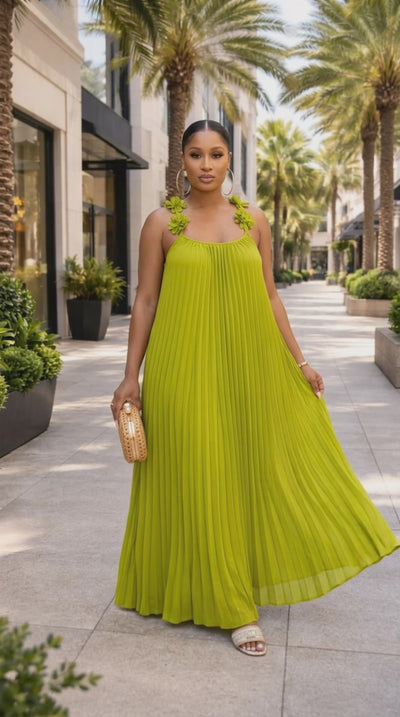 Lime Pleated Flow Dress-Light. Movement. Presence. This is the dress you reach for when you want to be seen… without trying too hard.